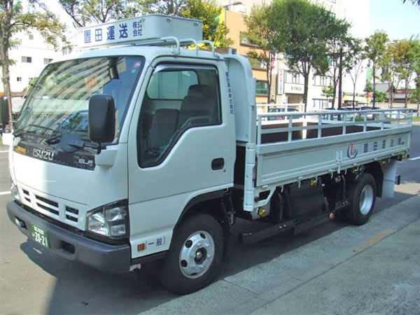 どこでも見受けられるごく一般的なトラックですが、天井クレーン積みや長尺物の運搬には欠かせない車輌です。仕様は最大積載量やボディーの長さ、幅、荷台までの高さ等それぞれ異なっておりますので、輸送を依頼されるときはご相談頂きますようお願い致します。